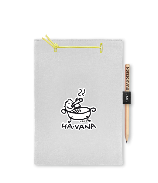 Blok A4 s vyměnitelnými papíry. Na přední straně možnost výběru z více než 300 potisků. Vyrobeno ze 100% bavlny. Výběr z 28 barev. Tiskneme ručním sítotiskem. V horní části blok A4 stažen žlutou gumičkou. 60 listů s perforací pro snadnější odtržení. Žlutá guma ve spodní části pro zajištění obalu. K bloku získáte i tužku #UAXDESIGN