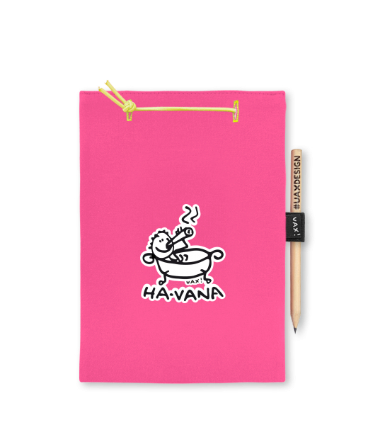 Blok A4 s vyměnitelnými papíry. Na přední straně možnost výběru z více než 300 potisků. Vyrobeno ze 100% bavlny. Výběr z 28 barev. Tiskneme ručním sítotiskem. V horní části blok A4 stažen žlutou gumičkou. 60 listů s perforací pro snadnější odtržení. Žlutá guma ve spodní části pro zajištění obalu. K bloku získáte i tužku #UAXDESIGN