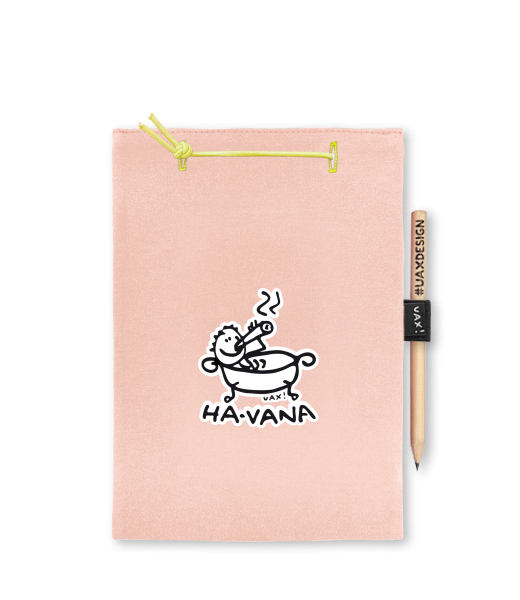 Blok A4 s vyměnitelnými papíry. Na přední straně možnost výběru z více než 300 potisků. Vyrobeno ze 100% bavlny. Výběr z 28 barev. Tiskneme ručním sítotiskem. V horní části blok A4 stažen žlutou gumičkou. 60 listů s perforací pro snadnější odtržení. Žlutá guma ve spodní části pro zajištění obalu. K bloku získáte i tužku #UAXDESIGN