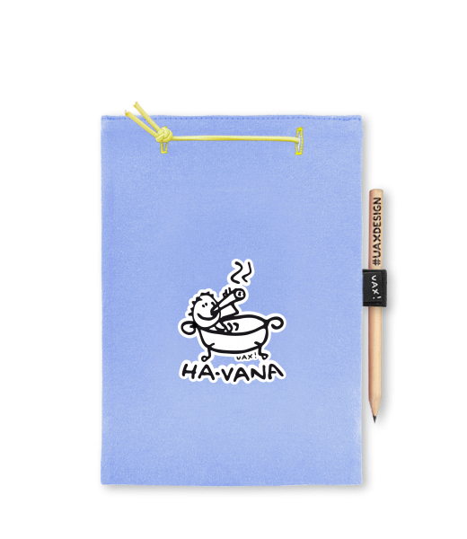 Blok A4 s vyměnitelnými papíry. Na přední straně možnost výběru z více než 300 potisků. Vyrobeno ze 100% bavlny. Výběr z 28 barev. Tiskneme ručním sítotiskem. V horní části blok A4 stažen žlutou gumičkou. 60 listů s perforací pro snadnější odtržení. Žlutá guma ve spodní části pro zajištění obalu. K bloku získáte i tužku #UAXDESIGN