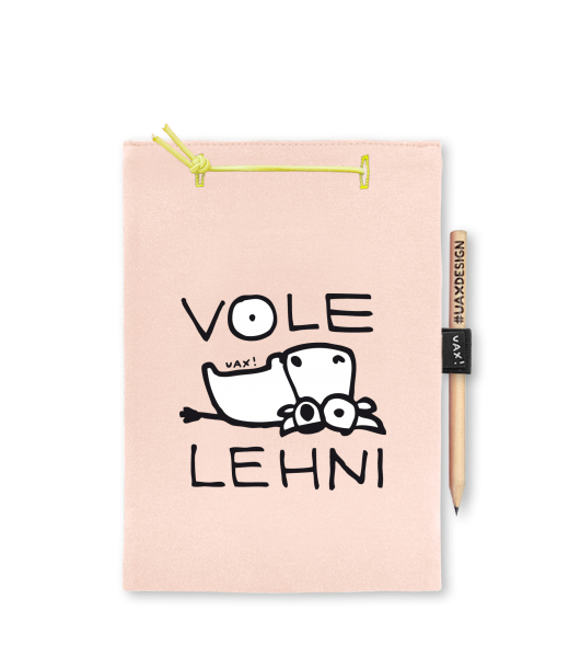 Blok A4 s vyměnitelnými papíry. Na přední straně možnost výběru z více než 300 potisků. Vyrobeno ze 100% bavlny. Výběr z 28 barev. Tiskneme ručním sítotiskem. V horní části blok A4 stažen žlutou gumičkou. 60 listů s perforací pro snadnější odtržení. Žlutá guma ve spodní části pro zajištění obalu. K bloku získáte i tužku #UAXDESIGN