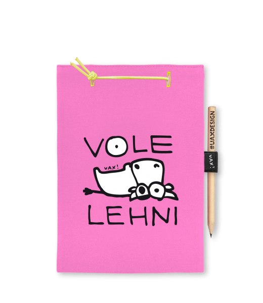 Blok A4 s vyměnitelnými papíry. Na přední straně možnost výběru z více než 300 potisků. Vyrobeno ze 100% bavlny. Výběr z 28 barev. Tiskneme ručním sítotiskem. V horní části blok A4 stažen žlutou gumičkou. 60 listů s perforací pro snadnější odtržení. Žlutá guma ve spodní části pro zajištění obalu. K bloku získáte i tužku #UAXDESIGN