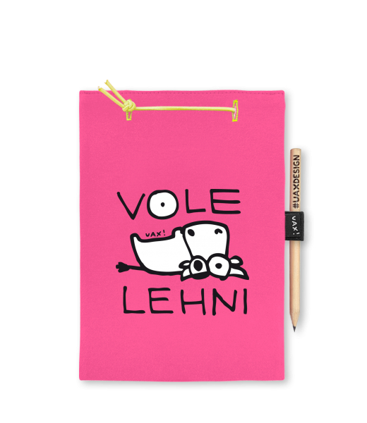 Blok A4 s vyměnitelnými papíry. Na přední straně možnost výběru z více než 300 potisků. Vyrobeno ze 100% bavlny. Výběr z 28 barev. Tiskneme ručním sítotiskem. V horní části blok A4 stažen žlutou gumičkou. 60 listů s perforací pro snadnější odtržení. Žlutá guma ve spodní části pro zajištění obalu. K bloku získáte i tužku #UAXDESIGN
