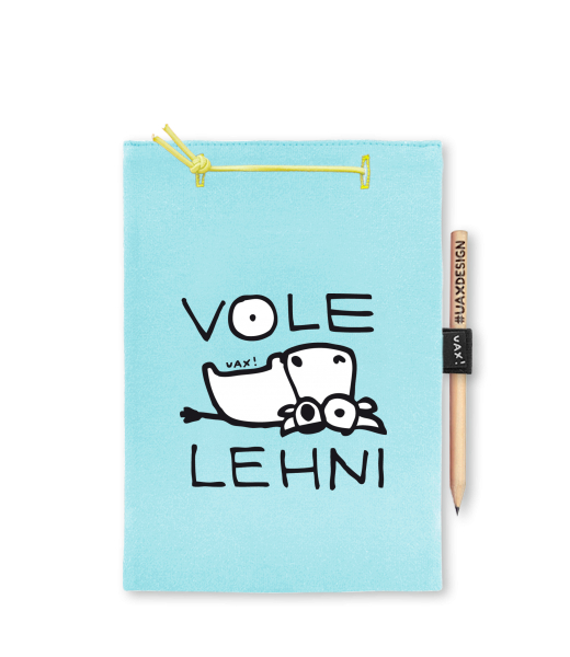Blok A4 s vyměnitelnými papíry. Na přední straně možnost výběru z více než 300 potisků. Vyrobeno ze 100% bavlny. Výběr z 28 barev. Tiskneme ručním sítotiskem. V horní části blok A4 stažen žlutou gumičkou. 60 listů s perforací pro snadnější odtržení. Žlutá guma ve spodní části pro zajištění obalu. K bloku získáte i tužku #UAXDESIGN