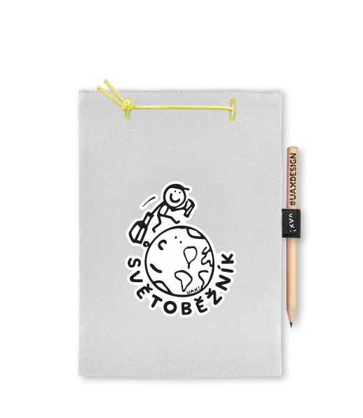 Blok A4 s vyměnitelnými papíry. Na přední straně možnost výběru z více než 300 potisků. Vyrobeno ze 100% bavlny. Výběr z 28 barev. Tiskneme ručním sítotiskem. V horní části blok A4 stažen žlutou gumičkou. 60 listů s perforací pro snadnější odtržení. Žlutá guma ve spodní části pro zajištění obalu. K bloku získáte i tužku #UAXDESIGN