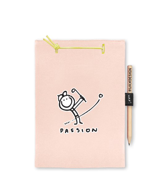 Blok A4 s vyměnitelnými papíry. Na přední straně možnost výběru z více než 300 potisků. Vyrobeno ze 100% bavlny. Výběr z 28 barev. Tiskneme ručním sítotiskem. V horní části blok A4 stažen žlutou gumičkou. 60 listů s perforací pro snadnější odtržení. Žlutá guma ve spodní části pro zajištění obalu. K bloku získáte i tužku #UAXDESIGN