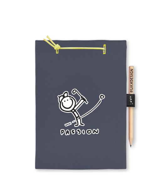 Blok A4 s vyměnitelnými papíry. Na přední straně možnost výběru z více než 300 potisků. Vyrobeno ze 100% bavlny. Výběr z 28 barev. Tiskneme ručním sítotiskem. V horní části blok A4 stažen žlutou gumičkou. 60 listů s perforací pro snadnější odtržení. Žlutá guma ve spodní části pro zajištění obalu. K bloku získáte i tužku #UAXDESIGN