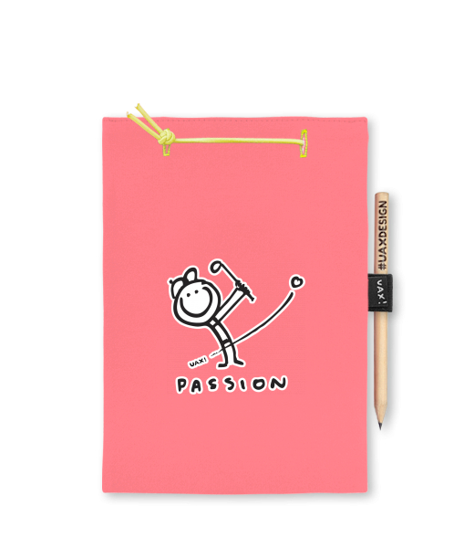 Blok A4 s vyměnitelnými papíry. Na přední straně možnost výběru z více než 300 potisků. Vyrobeno ze 100% bavlny. Výběr z 28 barev. Tiskneme ručním sítotiskem. V horní části blok A4 stažen žlutou gumičkou. 60 listů s perforací pro snadnější odtržení. Žlutá guma ve spodní části pro zajištění obalu. K bloku získáte i tužku #UAXDESIGN