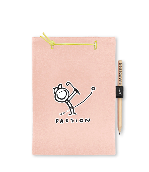Blok A4 s vyměnitelnými papíry. Na přední straně možnost výběru z více než 300 potisků. Vyrobeno ze 100% bavlny. Výběr z 28 barev. Tiskneme ručním sítotiskem. V horní části blok A4 stažen žlutou gumičkou. 60 listů s perforací pro snadnější odtržení. Žlutá guma ve spodní části pro zajištění obalu. K bloku získáte i tužku #UAXDESIGN