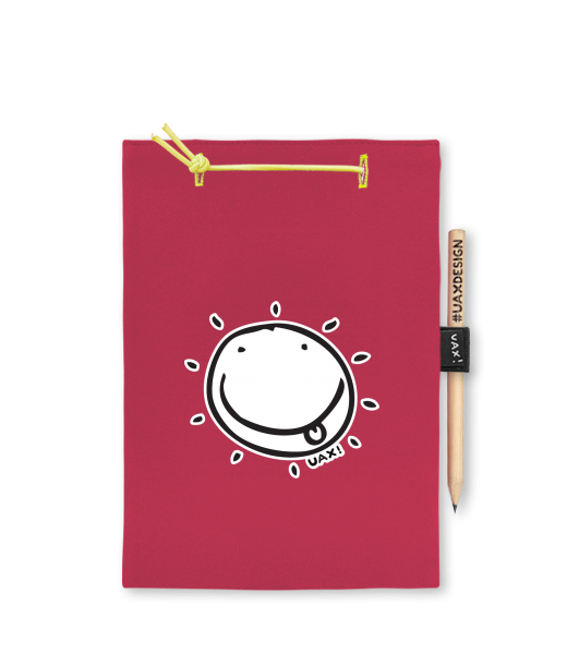 Blok A4 s vyměnitelnými papíry. Na přední straně možnost výběru z více než 300 potisků. Vyrobeno ze 100% bavlny. Výběr z 28 barev. Tiskneme ručním sítotiskem. V horní části blok A4 stažen žlutou gumičkou. 60 listů s perforací pro snadnější odtržení. Žlutá guma ve spodní části pro zajištění obalu. K bloku získáte i tužku #UAXDESIGN