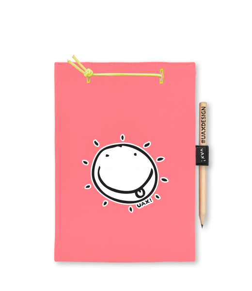 Blok A4 s vyměnitelnými papíry. Na přední straně možnost výběru z více než 300 potisků. Vyrobeno ze 100% bavlny. Výběr z 28 barev. Tiskneme ručním sítotiskem. V horní části blok A4 stažen žlutou gumičkou. 60 listů s perforací pro snadnější odtržení. Žlutá guma ve spodní části pro zajištění obalu. K bloku získáte i tužku #UAXDESIGN