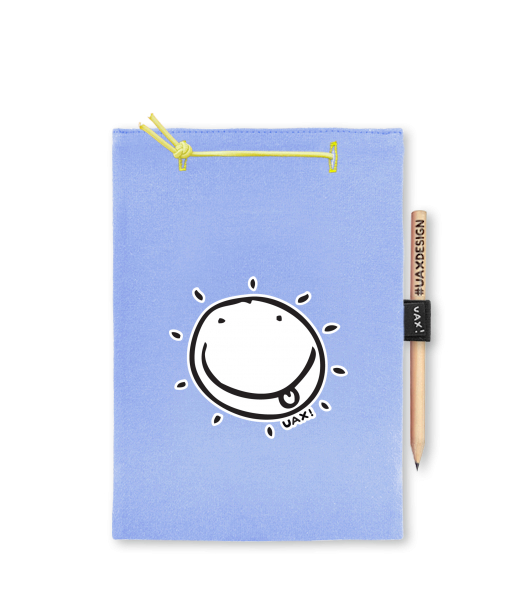 Blok A4 s vyměnitelnými papíry. Na přední straně možnost výběru z více než 300 potisků. Vyrobeno ze 100% bavlny. Výběr z 28 barev. Tiskneme ručním sítotiskem. V horní části blok A4 stažen žlutou gumičkou. 60 listů s perforací pro snadnější odtržení. Žlutá guma ve spodní části pro zajištění obalu. K bloku získáte i tužku #UAXDESIGN