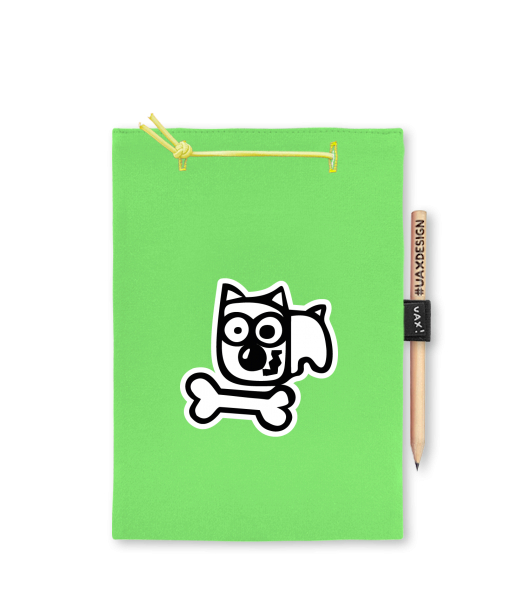 Blok A4 s vyměnitelnými papíry. Na přední straně možnost výběru z více než 300 potisků. Vyrobeno ze 100% bavlny. Výběr z 28 barev. Tiskneme ručním sítotiskem. V horní části blok A4 stažen žlutou gumičkou. 60 listů s perforací pro snadnější odtržení. Žlutá guma ve spodní části pro zajištění obalu. K bloku získáte i tužku #UAXDESIGN