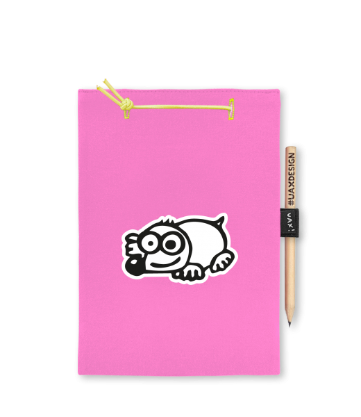 Blok A4 s vyměnitelnými papíry. Na přední straně možnost výběru z více než 300 potisků. Vyrobeno ze 100% bavlny. Výběr z 28 barev. Tiskneme ručním sítotiskem. V horní části blok A4 stažen žlutou gumičkou. 60 listů s perforací pro snadnější odtržení. Žlutá guma ve spodní části pro zajištění obalu. K bloku získáte i tužku #UAXDESIGN