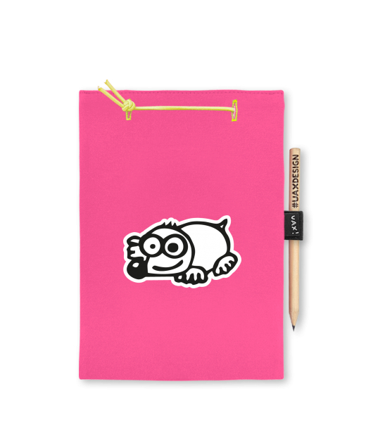 Blok A4 s vyměnitelnými papíry. Na přední straně možnost výběru z více než 300 potisků. Vyrobeno ze 100% bavlny. Výběr z 28 barev. Tiskneme ručním sítotiskem. V horní části blok A4 stažen žlutou gumičkou. 60 listů s perforací pro snadnější odtržení. Žlutá guma ve spodní části pro zajištění obalu. K bloku získáte i tužku #UAXDESIGN