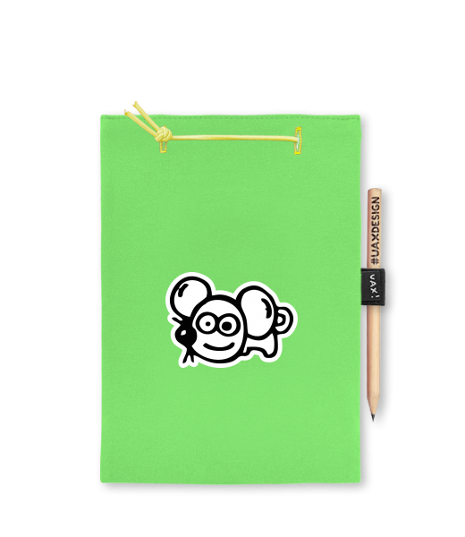 Blok A4 s vyměnitelnými papíry. Na přední straně možnost výběru z více než 300 potisků. Vyrobeno ze 100% bavlny. Výběr z 28 barev. Tiskneme ručním sítotiskem. V horní části blok A4 stažen žlutou gumičkou. 60 listů s perforací pro snadnější odtržení. Žlutá guma ve spodní části pro zajištění obalu. K bloku získáte i tužku #UAXDESIGN