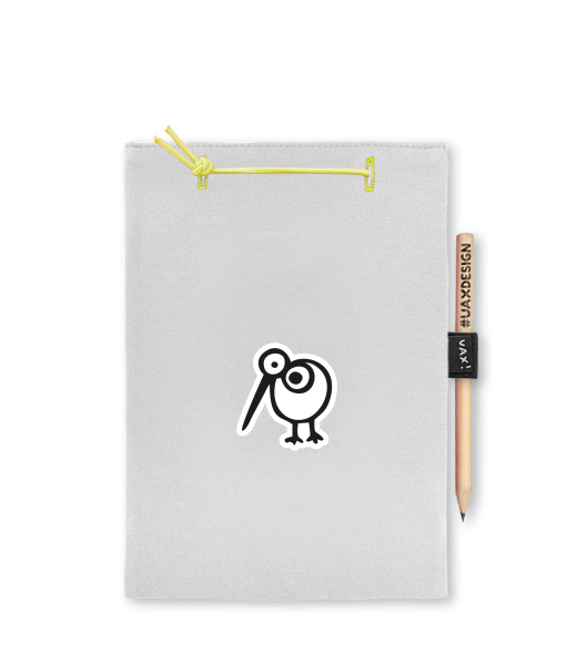 Blok A4 s vyměnitelnými papíry. Na přední straně možnost výběru z více než 300 potisků. Vyrobeno ze 100% bavlny. Výběr z 28 barev. Tiskneme ručním sítotiskem. V horní části blok A4 stažen žlutou gumičkou. 60 listů s perforací pro snadnější odtržení. Žlutá guma ve spodní části pro zajištění obalu. K bloku získáte i tužku #UAXDESIGN