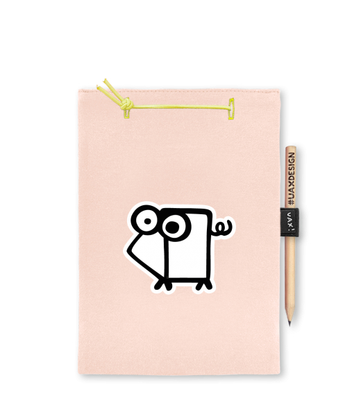 Blok A4 s vyměnitelnými papíry. Na přední straně možnost výběru z více než 300 potisků. Vyrobeno ze 100% bavlny. Výběr z 28 barev. Tiskneme ručním sítotiskem. V horní části blok A4 stažen žlutou gumičkou. 60 listů s perforací pro snadnější odtržení. Žlutá guma ve spodní části pro zajištění obalu. K bloku získáte i tužku #UAXDESIGN