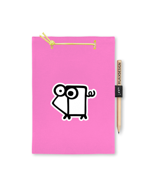 Blok A4 s vyměnitelnými papíry. Na přední straně možnost výběru z více než 300 potisků. Vyrobeno ze 100% bavlny. Výběr z 28 barev. Tiskneme ručním sítotiskem. V horní části blok A4 stažen žlutou gumičkou. 60 listů s perforací pro snadnější odtržení. Žlutá guma ve spodní části pro zajištění obalu. K bloku získáte i tužku #UAXDESIGN