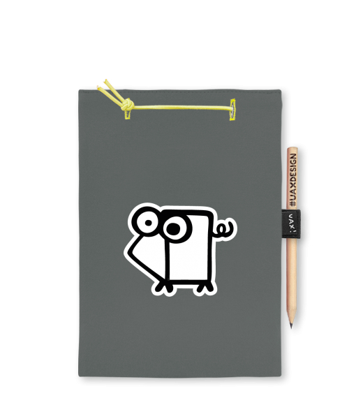 Blok A4 s vyměnitelnými papíry. Na přední straně možnost výběru z více než 300 potisků. Vyrobeno ze 100% bavlny. Výběr z 28 barev. Tiskneme ručním sítotiskem. V horní části blok A4 stažen žlutou gumičkou. 60 listů s perforací pro snadnější odtržení. Žlutá guma ve spodní části pro zajištění obalu. K bloku získáte i tužku #UAXDESIGN