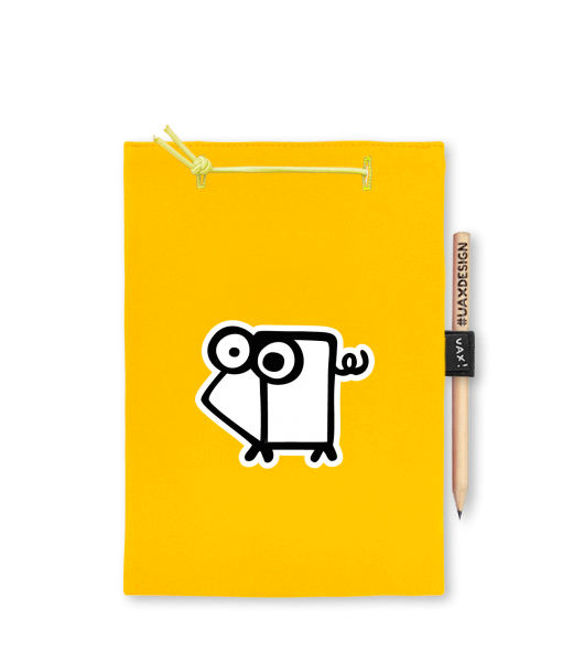 Blok A4 s vyměnitelnými papíry. Na přední straně možnost výběru z více než 300 potisků. Vyrobeno ze 100% bavlny. Výběr z 28 barev. Tiskneme ručním sítotiskem. V horní části blok A4 stažen žlutou gumičkou. 60 listů s perforací pro snadnější odtržení. Žlutá guma ve spodní části pro zajištění obalu. K bloku získáte i tužku #UAXDESIGN