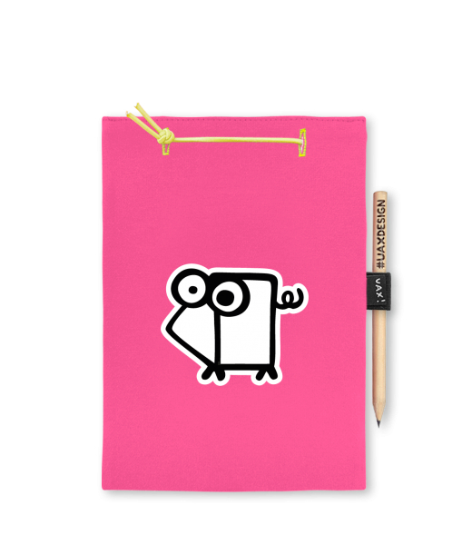 Blok A4 s vyměnitelnými papíry. Na přední straně možnost výběru z více než 300 potisků. Vyrobeno ze 100% bavlny. Výběr z 28 barev. Tiskneme ručním sítotiskem. V horní části blok A4 stažen žlutou gumičkou. 60 listů s perforací pro snadnější odtržení. Žlutá guma ve spodní části pro zajištění obalu. K bloku získáte i tužku #UAXDESIGN