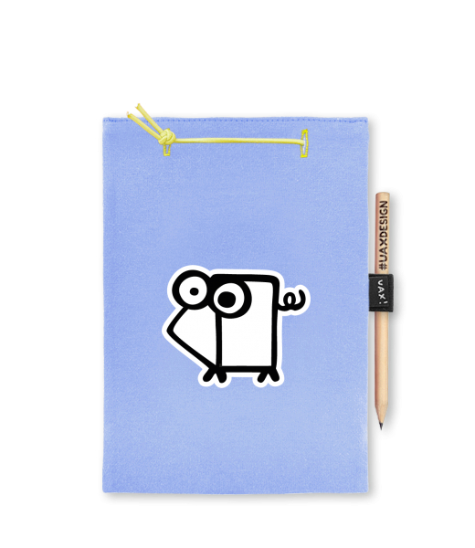 Blok A4 s vyměnitelnými papíry. Na přední straně možnost výběru z více než 300 potisků. Vyrobeno ze 100% bavlny. Výběr z 28 barev. Tiskneme ručním sítotiskem. V horní části blok A4 stažen žlutou gumičkou. 60 listů s perforací pro snadnější odtržení. Žlutá guma ve spodní části pro zajištění obalu. K bloku získáte i tužku #UAXDESIGN