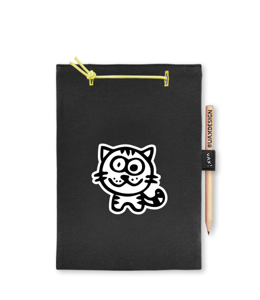 Blok A4 s vyměnitelnými papíry. Na přední straně možnost výběru z více než 300 potisků. Vyrobeno ze 100% bavlny. Výběr z 28 barev. Tiskneme ručním sítotiskem. V horní části blok A4 stažen žlutou gumičkou. 60 listů s perforací pro snadnější odtržení. Žlutá guma ve spodní části pro zajištění obalu. K bloku získáte i tužku #UAXDESIGN