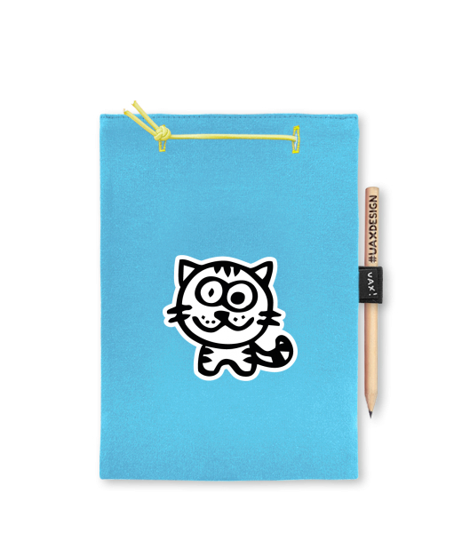 Blok A4 s vyměnitelnými papíry. Na přední straně možnost výběru z více než 300 potisků. Vyrobeno ze 100% bavlny. Výběr z 28 barev. Tiskneme ručním sítotiskem. V horní části blok A4 stažen žlutou gumičkou. 60 listů s perforací pro snadnější odtržení. Žlutá guma ve spodní části pro zajištění obalu. K bloku získáte i tužku #UAXDESIGN