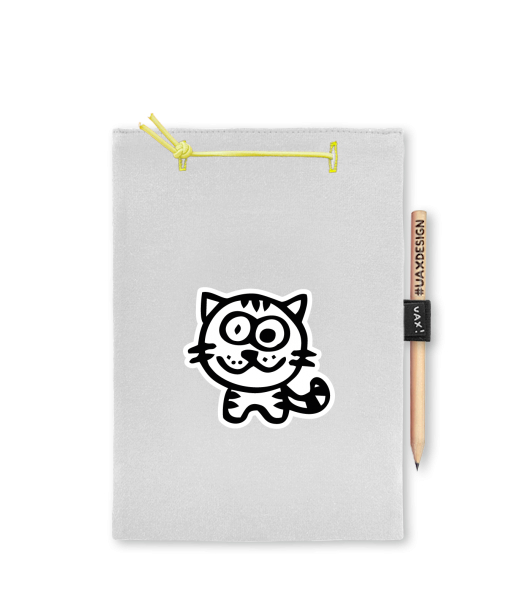 Blok A4 s vyměnitelnými papíry. Na přední straně možnost výběru z více než 300 potisků. Vyrobeno ze 100% bavlny. Výběr z 28 barev. Tiskneme ručním sítotiskem. V horní části blok A4 stažen žlutou gumičkou. 60 listů s perforací pro snadnější odtržení. Žlutá guma ve spodní části pro zajištění obalu. K bloku získáte i tužku #UAXDESIGN