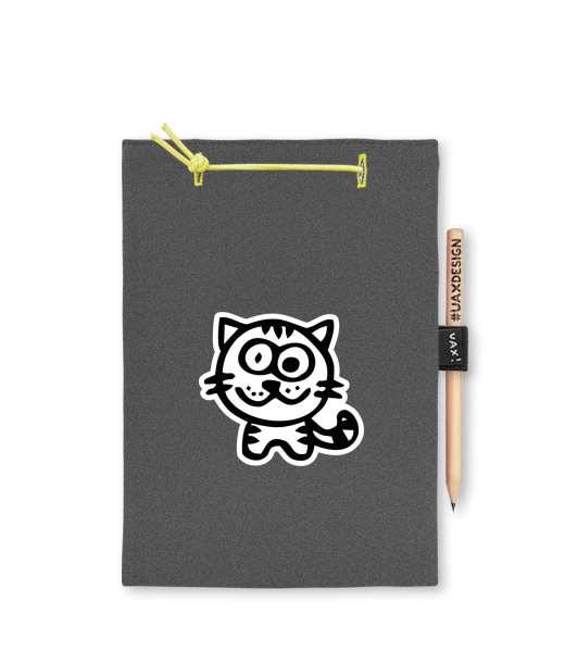 Blok A4 s vyměnitelnými papíry. Na přední straně možnost výběru z více než 300 potisků. Vyrobeno ze 100% bavlny. Výběr z 28 barev. Tiskneme ručním sítotiskem. V horní části blok A4 stažen žlutou gumičkou. 60 listů s perforací pro snadnější odtržení. Žlutá guma ve spodní části pro zajištění obalu. K bloku získáte i tužku #UAXDESIGN
