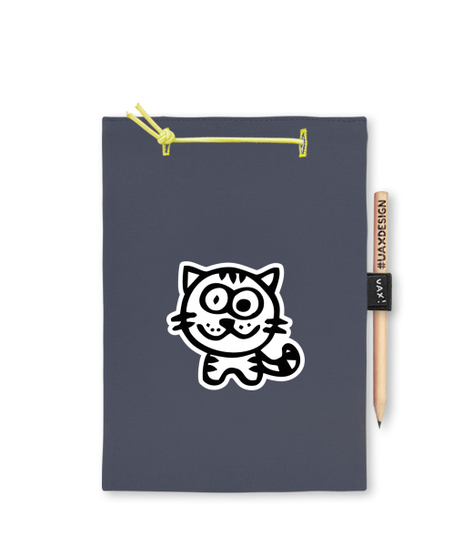 Blok A4 s vyměnitelnými papíry. Na přední straně možnost výběru z více než 300 potisků. Vyrobeno ze 100% bavlny. Výběr z 28 barev. Tiskneme ručním sítotiskem. V horní části blok A4 stažen žlutou gumičkou. 60 listů s perforací pro snadnější odtržení. Žlutá guma ve spodní části pro zajištění obalu. K bloku získáte i tužku #UAXDESIGN