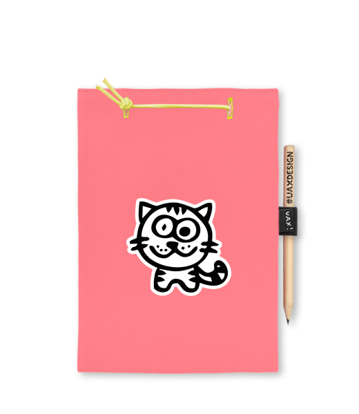 Blok A4 s vyměnitelnými papíry. Na přední straně možnost výběru z více než 300 potisků. Vyrobeno ze 100% bavlny. Výběr z 28 barev. Tiskneme ručním sítotiskem. V horní části blok A4 stažen žlutou gumičkou. 60 listů s perforací pro snadnější odtržení. Žlutá guma ve spodní části pro zajištění obalu. K bloku získáte i tužku #UAXDESIGN