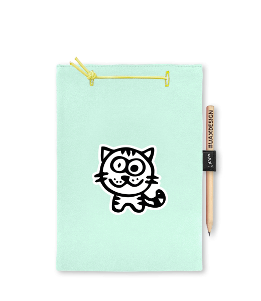Blok A4 s vyměnitelnými papíry. Na přední straně možnost výběru z více než 300 potisků. Vyrobeno ze 100% bavlny. Výběr z 28 barev. Tiskneme ručním sítotiskem. V horní části blok A4 stažen žlutou gumičkou. 60 listů s perforací pro snadnější odtržení. Žlutá guma ve spodní části pro zajištění obalu. K bloku získáte i tužku #UAXDESIGN