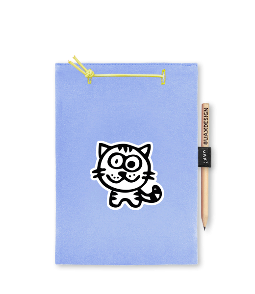 Blok A4 s vyměnitelnými papíry. Na přední straně možnost výběru z více než 300 potisků. Vyrobeno ze 100% bavlny. Výběr z 28 barev. Tiskneme ručním sítotiskem. V horní části blok A4 stažen žlutou gumičkou. 60 listů s perforací pro snadnější odtržení. Žlutá guma ve spodní části pro zajištění obalu. K bloku získáte i tužku #UAXDESIGN
