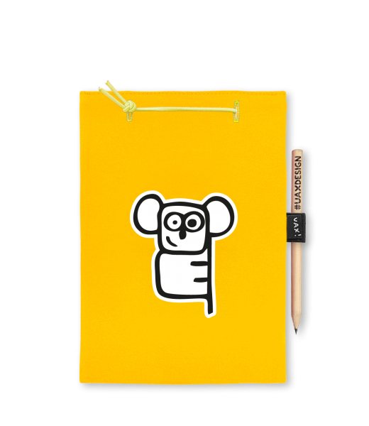 Blok A4 s vyměnitelnými papíry. Na přední straně možnost výběru z více než 300 potisků. Vyrobeno ze 100% bavlny. Výběr z 28 barev. Tiskneme ručním sítotiskem. V horní části blok A4 stažen žlutou gumičkou. 60 listů s perforací pro snadnější odtržení. Žlutá guma ve spodní části pro zajištění obalu. K bloku získáte i tužku #UAXDESIGN