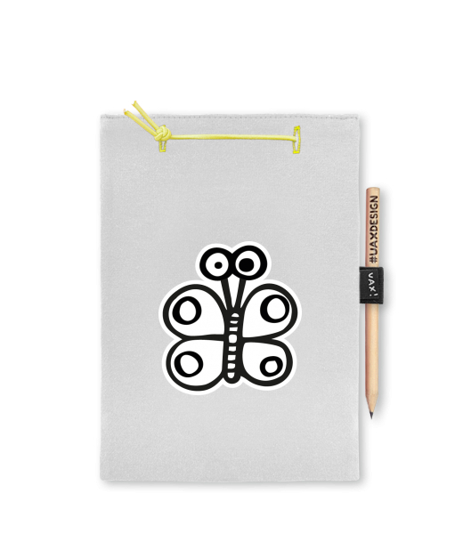 Blok A4 s vyměnitelnými papíry. Na přední straně možnost výběru z více než 300 potisků. Vyrobeno ze 100% bavlny. Výběr z 28 barev. Tiskneme ručním sítotiskem. V horní části blok A4 stažen žlutou gumičkou. 60 listů s perforací pro snadnější odtržení. Žlutá guma ve spodní části pro zajištění obalu. K bloku získáte i tužku #UAXDESIGN