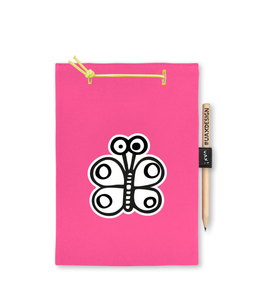 Blok A4 s vyměnitelnými papíry. Na přední straně možnost výběru z více než 300 potisků. Vyrobeno ze 100% bavlny. Výběr z 28 barev. Tiskneme ručním sítotiskem. V horní části blok A4 stažen žlutou gumičkou. 60 listů s perforací pro snadnější odtržení. Žlutá guma ve spodní části pro zajištění obalu. K bloku získáte i tužku #UAXDESIGN