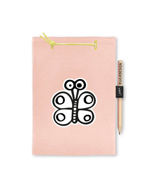 Blok A4 s vyměnitelnými papíry. Na přední straně možnost výběru z více než 300 potisků. Vyrobeno ze 100% bavlny. Výběr z 28 barev. Tiskneme ručním sítotiskem. V horní části blok A4 stažen žlutou gumičkou. 60 listů s perforací pro snadnější odtržení. Žlutá guma ve spodní části pro zajištění obalu. K bloku získáte i tužku #UAXDESIGN