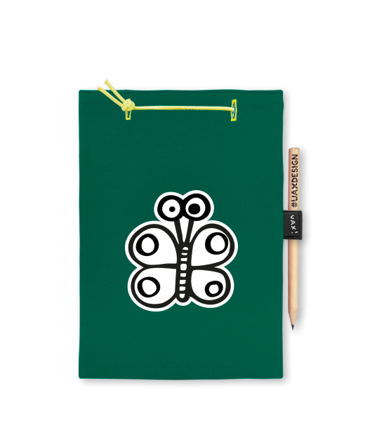 Blok A4 s vyměnitelnými papíry. Na přední straně možnost výběru z více než 300 potisků. Vyrobeno ze 100% bavlny. Výběr z 28 barev. Tiskneme ručním sítotiskem. V horní části blok A4 stažen žlutou gumičkou. 60 listů s perforací pro snadnější odtržení. Žlutá guma ve spodní části pro zajištění obalu. K bloku získáte i tužku #UAXDESIGN