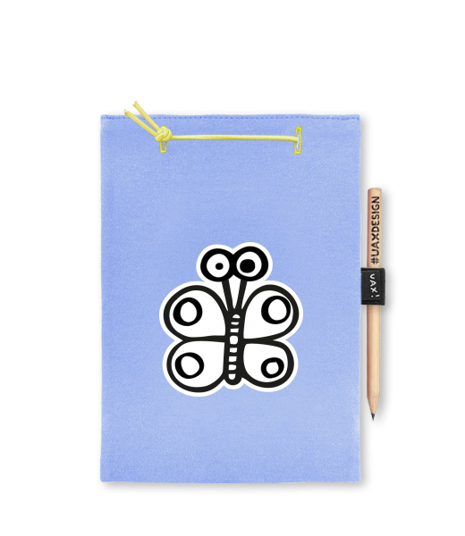 Blok A4 s vyměnitelnými papíry. Na přední straně možnost výběru z více než 300 potisků. Vyrobeno ze 100% bavlny. Výběr z 28 barev. Tiskneme ručním sítotiskem. V horní části blok A4 stažen žlutou gumičkou. 60 listů s perforací pro snadnější odtržení. Žlutá guma ve spodní části pro zajištění obalu. K bloku získáte i tužku #UAXDESIGN