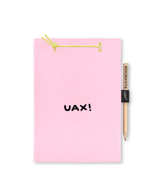 Blok A4 s vyměnitelnými papíry. Na přední straně možnost výběru z více než 300 potisků. Vyrobeno ze 100% bavlny. Výběr z 28 barev. Tiskneme ručním sítotiskem. V horní části blok A4 stažen žlutou gumičkou. 60 listů s perforací pro snadnější odtržení. Žlutá guma ve spodní části pro zajištění obalu. K bloku získáte i tužku #UAXDESIGN