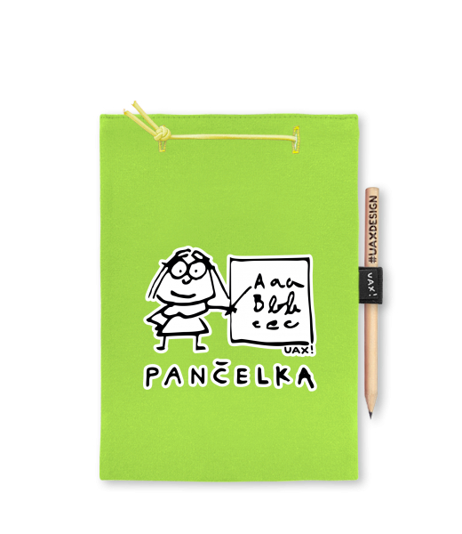 Blok A4 s vyměnitelnými papíry. Na přední straně možnost výběru z více než 300 potisků. Vyrobeno ze 100% bavlny. Výběr z 28 barev. Tiskneme ručním sítotiskem. V horní části blok A4 stažen žlutou gumičkou. 60 listů s perforací pro snadnější odtržení. Žlutá guma ve spodní části pro zajištění obalu. K bloku získáte i tužku #UAXDESIGN