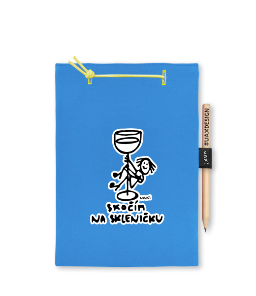 Blok A4 s potiskem 1384 SKOČÍM NA SKLENIČKU v barvě CAPRI BLUE