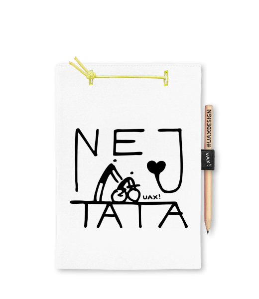 Blok A4 s vyměnitelnými papíry. Na přední straně možnost výběru z více než 300 potisků. Vyrobeno ze 100% bavlny. Výběr z 28 barev. Tiskneme ručním sítotiskem. V horní části blok A4 stažen žlutou gumičkou. 60 listů s perforací pro snadnější odtržení. Žlutá guma ve spodní části pro zajištění obalu. K bloku získáte i tužku #UAXDESIGN