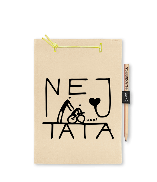 Blok A4 s vyměnitelnými papíry. Na přední straně možnost výběru z více než 300 potisků. Vyrobeno ze 100% bavlny. Výběr z 28 barev. Tiskneme ručním sítotiskem. V horní části blok A4 stažen žlutou gumičkou. 60 listů s perforací pro snadnější odtržení. Žlutá guma ve spodní části pro zajištění obalu. K bloku získáte i tužku #UAXDESIGN