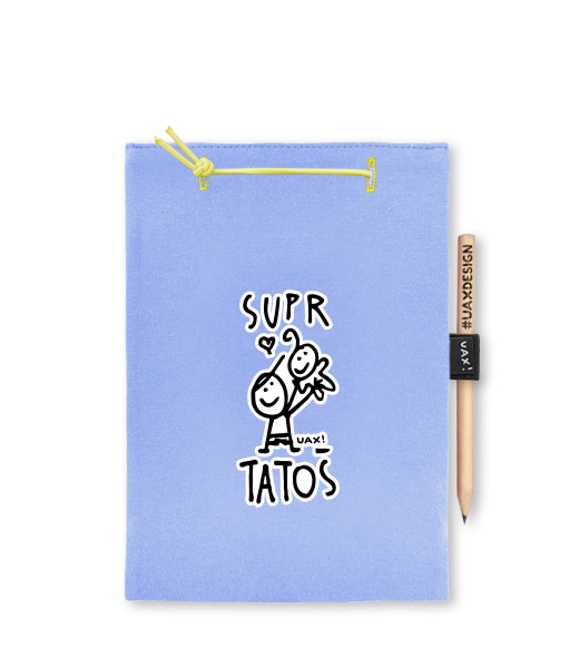 Blok A4 s vyměnitelnými papíry. Na přední straně možnost výběru z více než 300 potisků. Vyrobeno ze 100% bavlny. Výběr z 28 barev. Tiskneme ručním sítotiskem. V horní části blok A4 stažen žlutou gumičkou. 60 listů s perforací pro snadnější odtržení. Žlutá guma ve spodní části pro zajištění obalu. K bloku získáte i tužku #UAXDESIGN