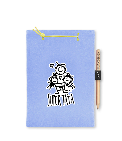 Blok A4 s vyměnitelnými papíry. Na přední straně možnost výběru z více než 300 potisků. Vyrobeno ze 100% bavlny. Výběr z 28 barev. Tiskneme ručním sítotiskem. V horní části blok A4 stažen žlutou gumičkou. 60 listů s perforací pro snadnější odtržení. Žlutá guma ve spodní části pro zajištění obalu. K bloku získáte i tužku #UAXDESIGN