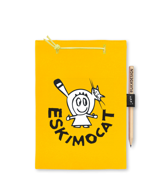 Blok A4 s vyměnitelnými papíry. Na přední straně možnost výběru z více než 300 potisků. Vyrobeno ze 100% bavlny. Výběr z 28 barev. Tiskneme ručním sítotiskem. V horní části blok A4 stažen žlutou gumičkou. 60 listů s perforací pro snadnější odtržení. Žlutá guma ve spodní části pro zajištění obalu. K bloku získáte i tužku #UAXDESIGN