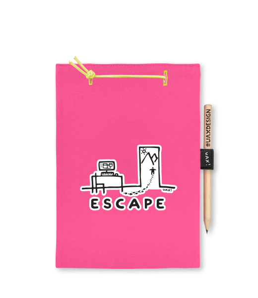 Blok A4 s vyměnitelnými papíry. Na přední straně možnost výběru z více než 300 potisků. Vyrobeno ze 100% bavlny. Výběr z 28 barev. Tiskneme ručním sítotiskem. V horní části blok A4 stažen žlutou gumičkou. 60 listů s perforací pro snadnější odtržení. Žlutá guma ve spodní části pro zajištění obalu. K bloku získáte i tužku #UAXDESIGN